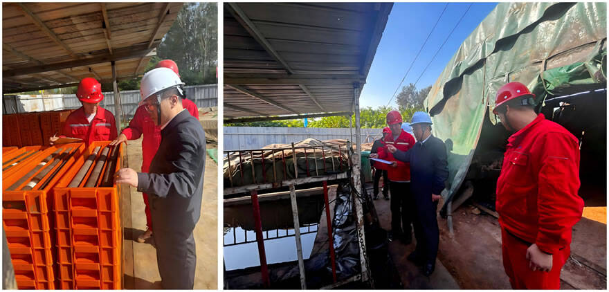 张新程一行首先在项目部召开座谈会,认真听取项目现场施工进展情况汇报。随后,深入1-3-1孔与1-3-2孔井场,实地察看了现场标准化建设、绿色勘查实施、临时用电规范及安全防护措施落实情况,并与项目现场负责人、技术骨干及钻机操作人员亲切交流,详细了解项目整体推进情况和存在的实际困难。