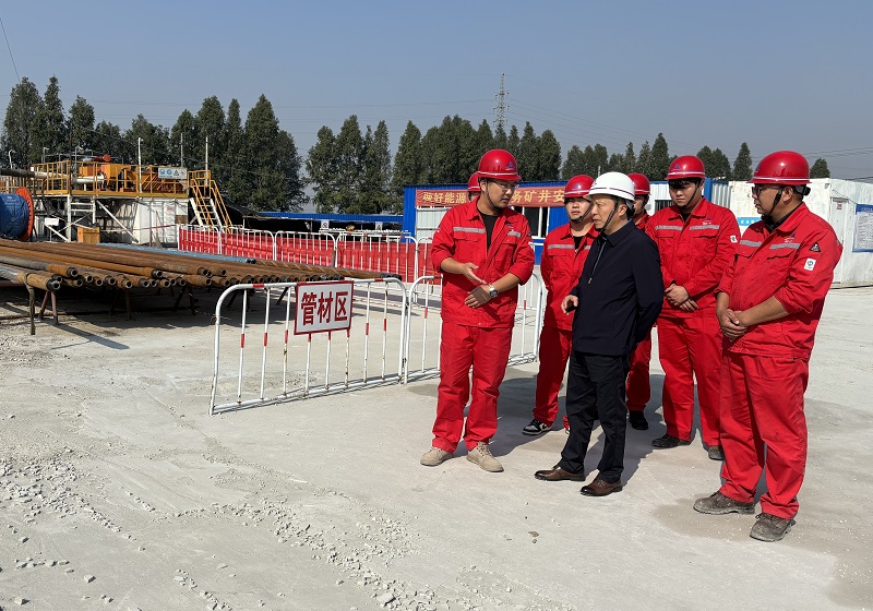 图为宋长兵在钻机施工项目现场调研