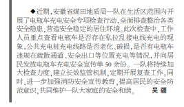 安徽局一队在生活区范围内开展电瓶车充电安全专项检查行动——见2025年6月2日中煤地质报第二版