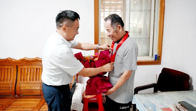在老党员家中,孙贵为其佩戴“光荣在党50年”纪念章。老党员抚摸着奖章动情地说:“感谢组织的惦记,我虽已退休,但党员身份永不褪色,仍将继续关注单位发展”。