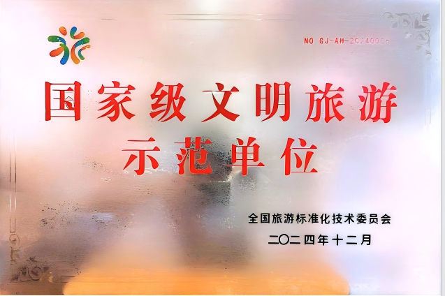 图为“国家级文明旅游示范单位”荣誉奖牌