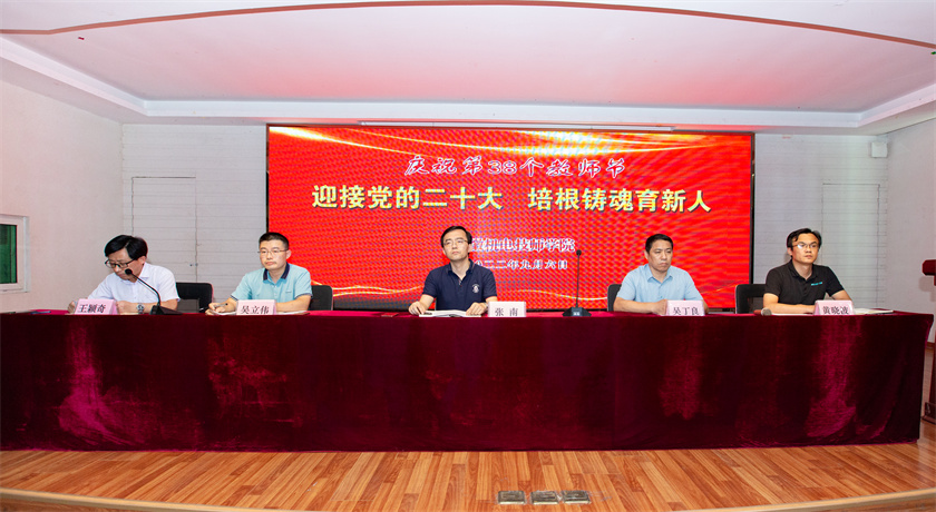 迎接党的二十大,培根铸魂育新人。9月6日下午,安徽机电技师学院庆祝第38个教师节暨教科研成果表彰大会隆重举行。学院党委书记、院长张南出席会议并讲话,学院党委领导班子成员出席会议,全体教职工参加大会。