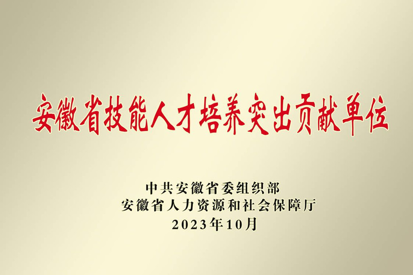 学院荣获安徽省技能人才培养突出贡献单位称号