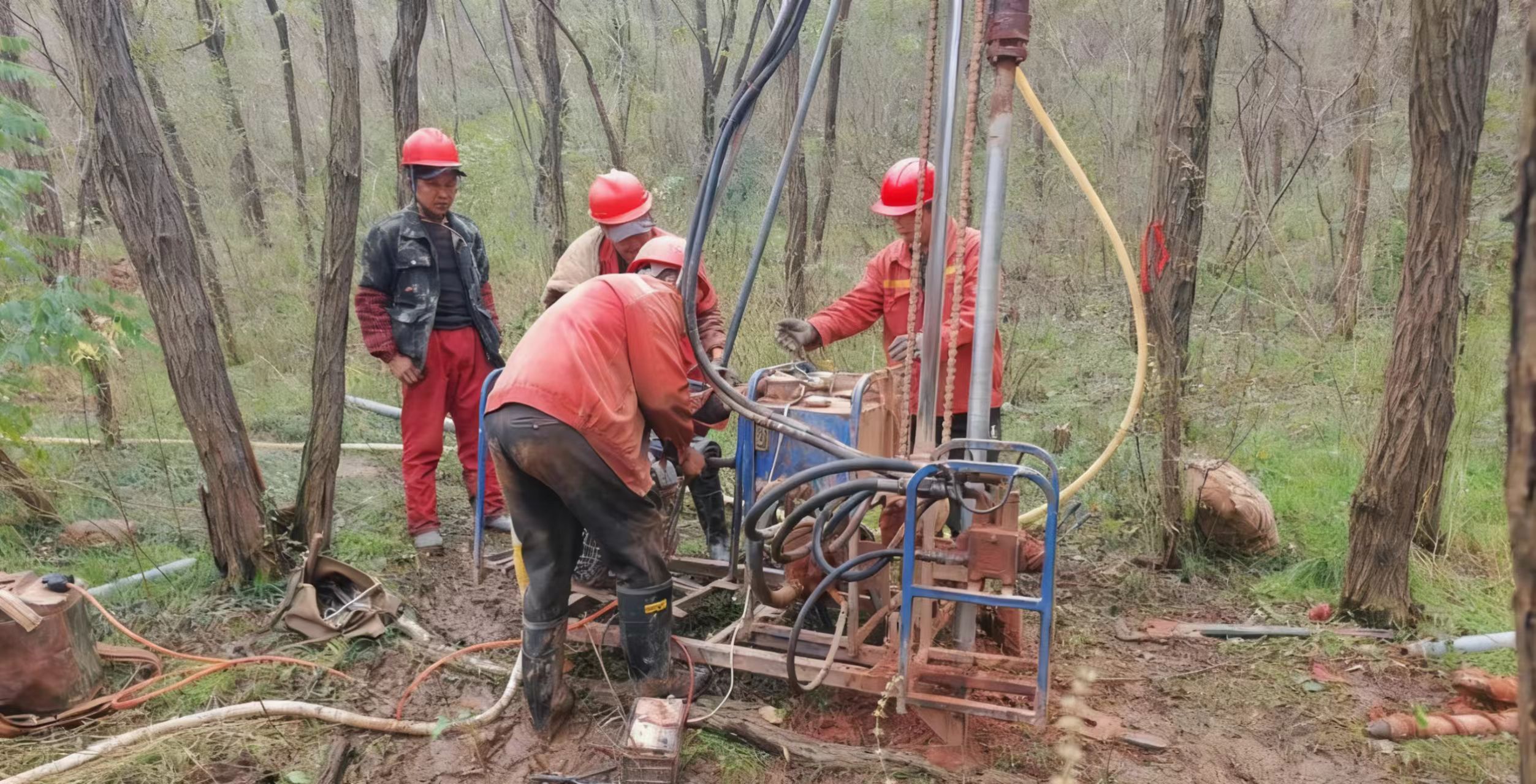 图为河南天安十三矿煤业高密度三维地震勘探项目正紧张施工