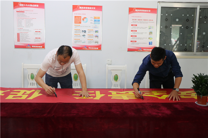 图为项目部举行安全横幅签名活动