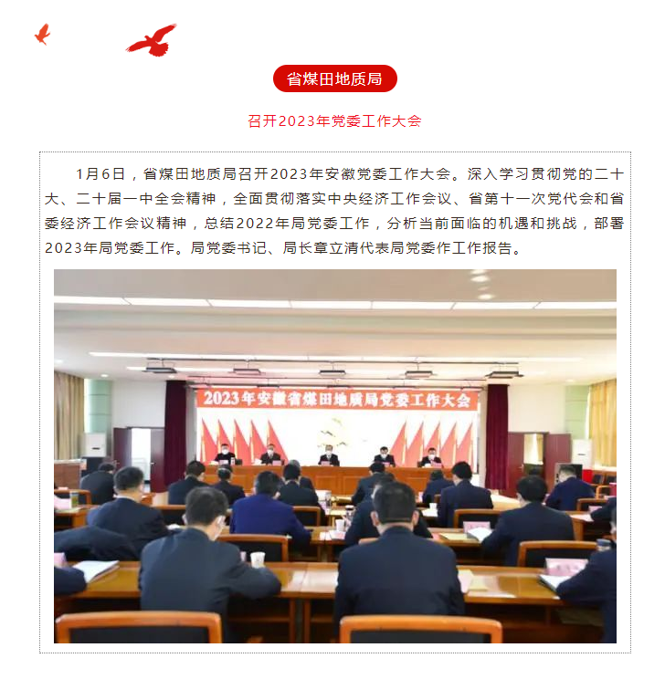 省煤田地质局召开2023年党委工作大会——见2023年1月13日安徽机关党建微信公众号