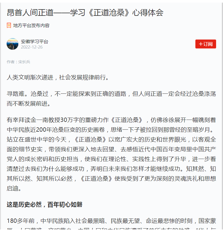昂首人间正道——学习《正道沧桑》心得体会(2022年12月26日“学习强国”安徽学习平台发布)