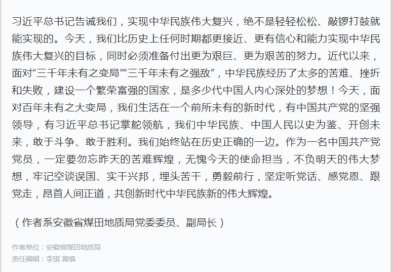 省煤田地质局党委中心组举行2023年第一次集体学习——见2023年1月21日安徽机关党建微信公众号