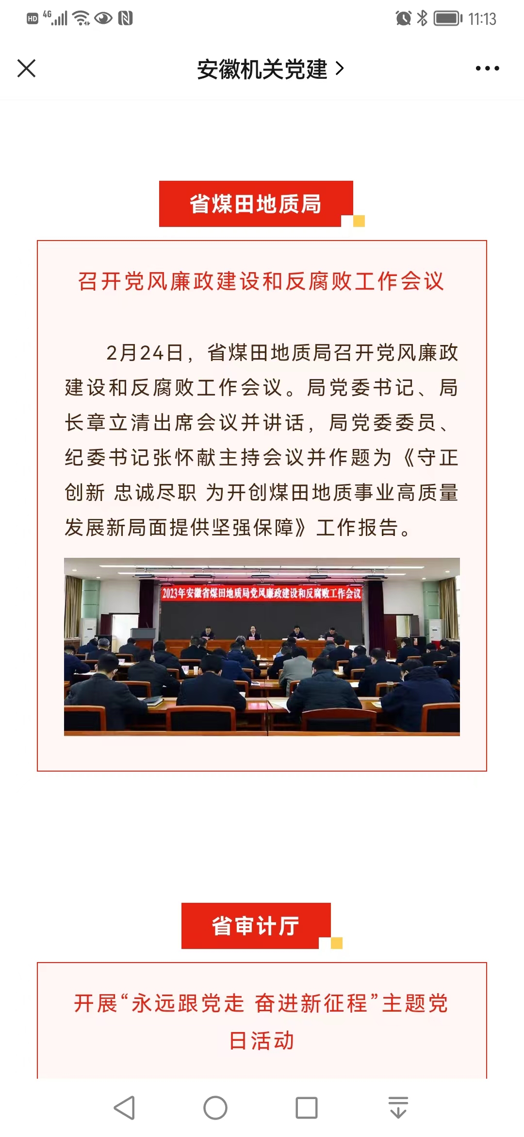 省煤田地质局召开党风廉政建设和反腐败工作会议——见2023年2月28日安徽机关党建微信公众号